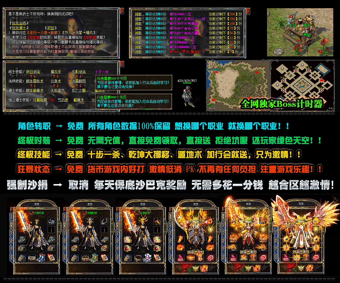 本服无任何坑爹消费,无任何花里胡哨,上手简单,散人可直接虐土豪!